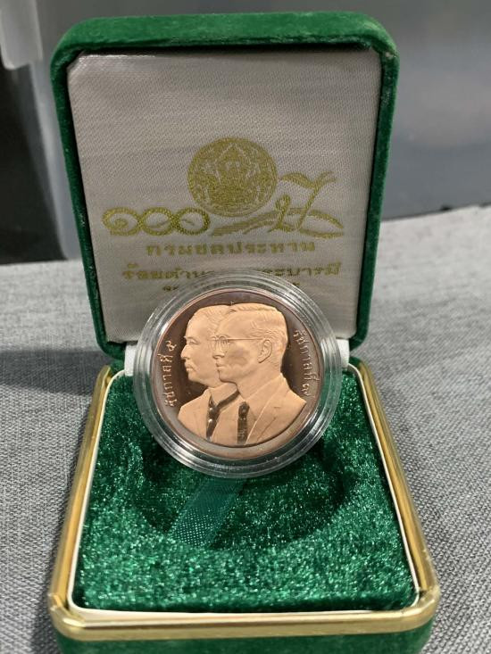 เหรียญ 1 บาท ฉลองสิริราชสมบัติครบ 50 ปี กาญจนาภิเษก พ.ศ.2539 ยกถุง 100 เหรียญ จำนวน 1 ถุง ซีลเดิม ตะกั่วอยู่ครบ ถุงปิดไม่เคยเปิดออก #4# |