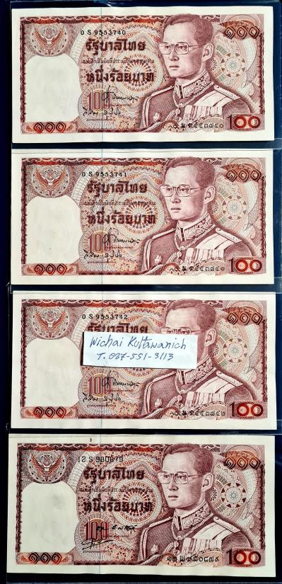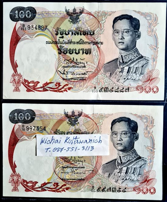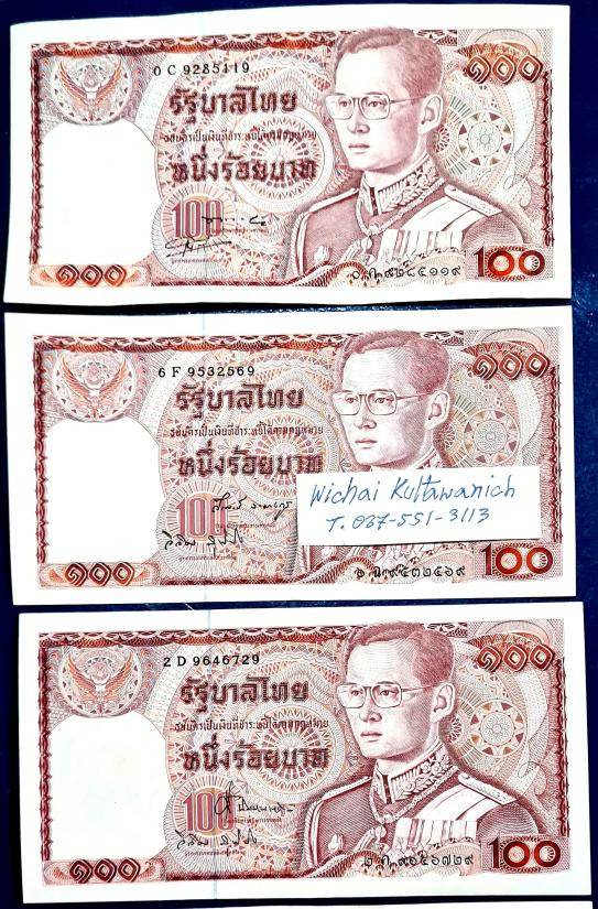 ธนบัตร 100 บาทไทย แบบ 15 รุ่น 2 (เลิกทาส) ในรัชกาลที่ 9 เลข 8ต (G) 0333333 UNC |