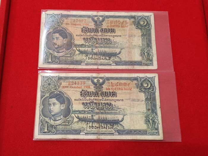 ในหลวง ร๙ ธนบัตรแบบ 9 ราคา 1 บาท รุ่น 5 ลายเซ็น เภา - เกษม UNC จำนวน 2 ฉบับ |