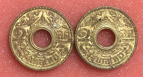 เหรียญ 1 สตางค์รู เนื้อทองแดง ปี 2484 / 2 เหรียญ ไม่ผ่านใช้ |