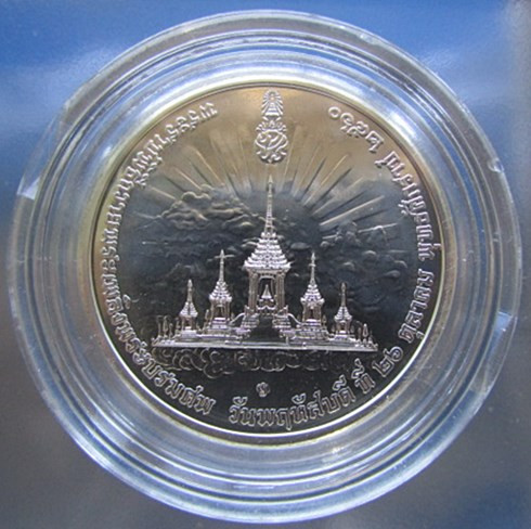 @# เหรียญเนื้อเงิน ที่ระลึกพระราชพิธีถวายพระเพลิงพระบรมศพ ร.9 พร้อมตลับพลาสติกใส และใบเซอร์ ไม่มีกล่อง เหรียญ ผ่าศูนย์กลาง 35 มม. โลหะเงินร้อยละ 92.5 นน.22 กรัมครับ เหรียญสวยเดิม ไม่ได้ใช้ ไม่มีกล่องค |