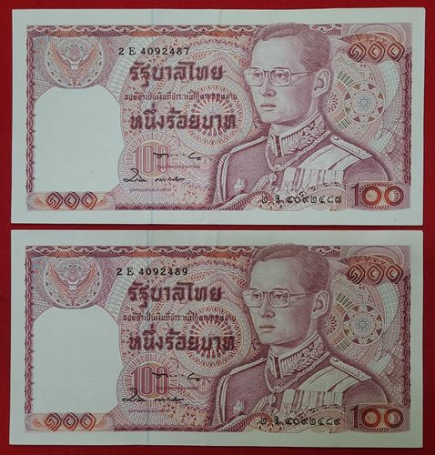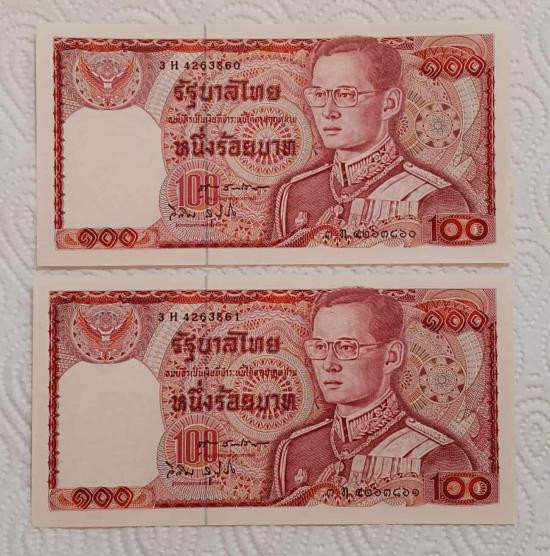 ธนบัตร 100บาท ร.9 แบบ 12 หลังช้างแดง สภาพสวย ไม่ผ่านการใช้ จำนวน 2ฉบับ |