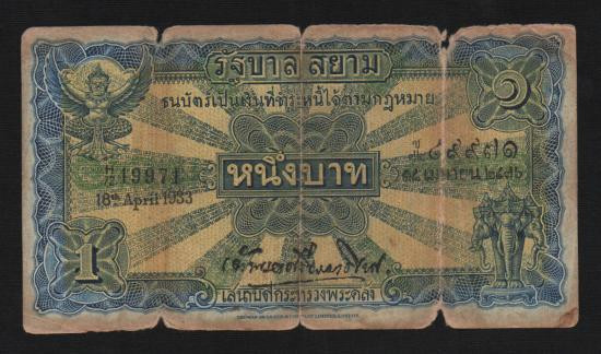 วัดใจ Rare Item รุ่นหายาก ธนบัตรรัชกาลที่ 8 แบบที่ 7 ชนิด 1 บาท โรงพิมพ์เอกชนภายในประเทศ ควบคุมโดยธนาคารแห่งประเทศไทย ปี พ.ศ 2488 |