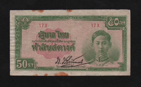วัดใจ ธนบัตร 50 สตางค์ แบบที่ 5 ผลิตที่ญี่ปุ่น สมัย ร.8 ปี 2488 น่าเก็บศึกษาสะสมมาก |