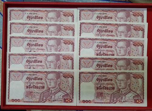 ธนบัตร 100 บาท ช้างแดง 10 ฉบับ **เลข 6 หลัก ** ไม่ผ่านการใช้ #1 เลขเรียง หมวด 30P-520605-520614 |