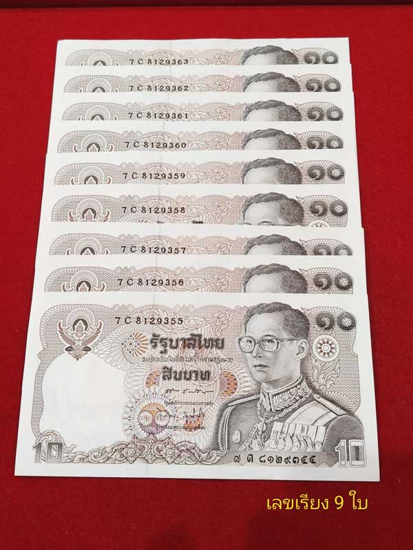 ธนบัตร 100 บาท ช้างแดง 9 ฉบับ **เลข 6 หลัก ** ไม่ผ่านการใช้ #2 เลขเรียง หมวด 52x-632412-632420 |