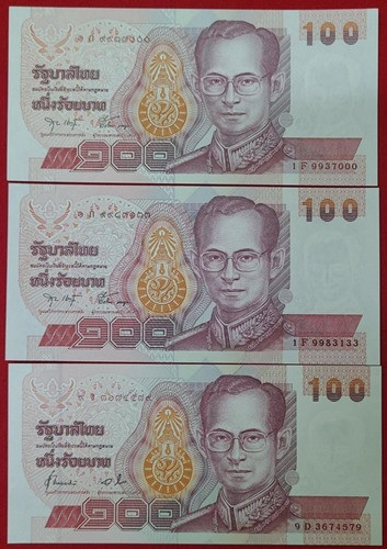 ธนบัตร 100 บาท ร.9 แบบ14 จำนวน 3ฉบับ สภาพใหม่ ไม่ได้ใช้ |
