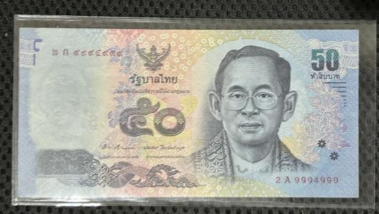 ธนบัตร 50 บาท ร.9 หลังสมเด็จพระนเรศวร เลขสวยๆ เกือบตอง 9 เลข 9994999 |