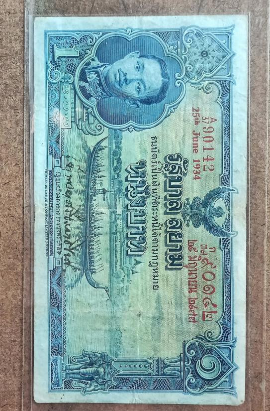 ธนบัตร 1บาท โทมัส ร.8 เลขแดง พ.ศ. 2479 ลายเซ็น พระยาไชยยศสมบัติ |