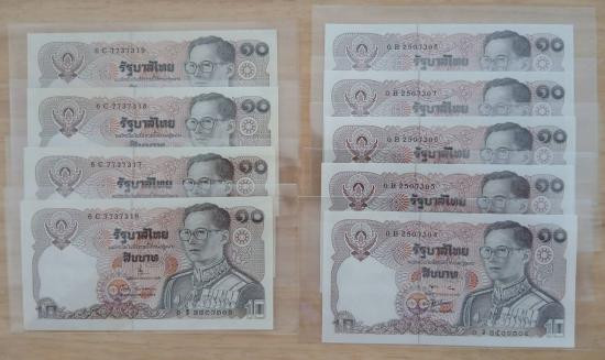 ธนบัตร 10 บาท แบบ 12 จำนวน 15 ฉบับ เลขเรียง 2 ชุด |