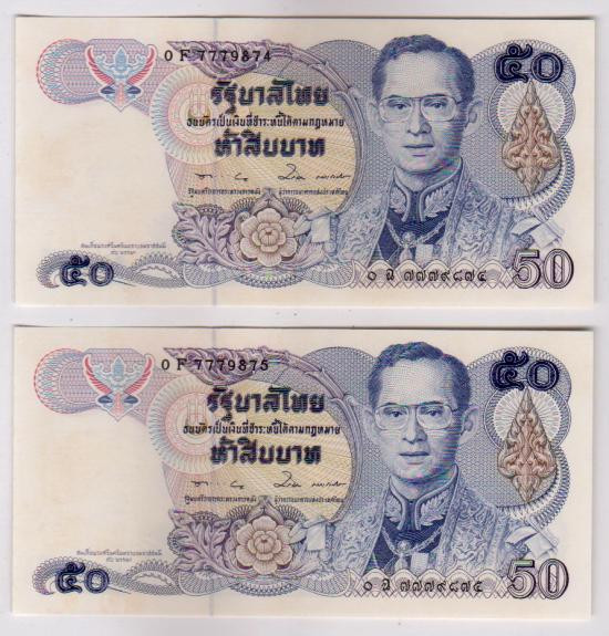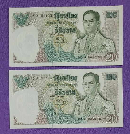 ธนบัตร 20 บาท หลังเรืออนันตนาคราช 2 ฉบับ เลขเรียง |
