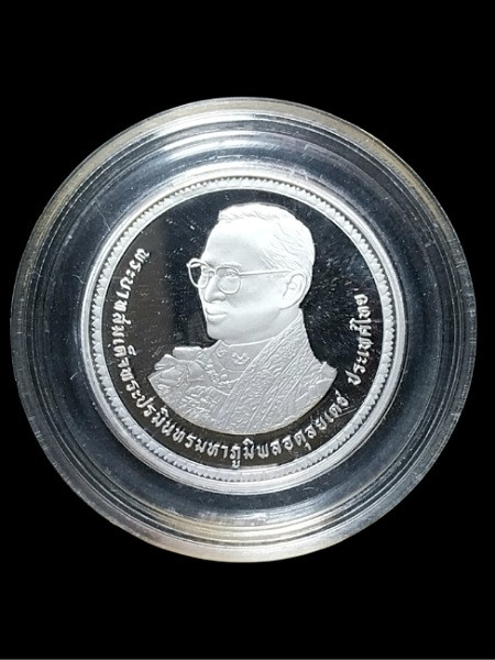 เหรียญที่ระลึกก่อสร้างพระมหาเจดีย์เฉลิมฉลอง๖๐พรรษา(เนื้อเงิน) สภาพสวยกล่องเดิม |