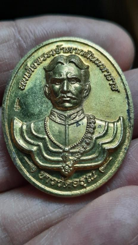 //เคาะแดง//เหรียญที่ระลึก จ.สุพรรณบุรี กะไหล่ทองพ่นทราย ขัดเงา |