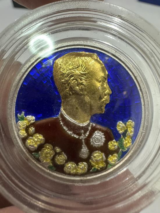 เหรียญที่ระลึก ร.9 พระราชพิธีฉลองสิริราชสมบัติครบ60ปี ทรงกล้องฉายภาพ เนื้อสามกษัตริย์ ปี2549 กรอบทองเลเซอร์ |