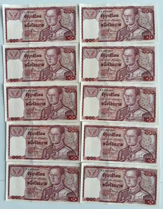 ธนบัตร 100 บาท รัชกาลที่ 9 แบบ 12 ช้างแดง จำนวน 9 ใบ สวยใหม่กริ๊บเลขแหนบ |