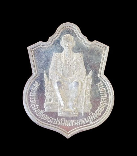 เหรียญในหลวงนั่งบัลลังก์ เนื้อเงินขัดเงา ที่ระลึกฉลองครองราชย์ 50 ปี จัดสร้างโดยกระทรวงมหาดไทย พ.ศ.2539 |