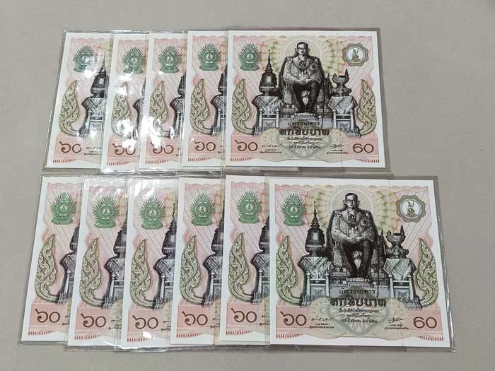 ธนบัตร 1 บาท ร.9 โทมัส 10 ฉบับ เรียงเลข |