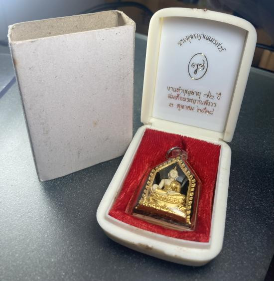 พระพุทธนราวันตบพิธ มวลสารเส้นพระเกศาและจีวรของในหลวง พร้อมกล่องเดิม+เหรียญลูกเสือเคาะเดียว |