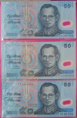 เคาะเดียว..ธนบัตรหมุนเวียน แบบที่ 15 รุ่นที่ 1 ฉบับราคา 50 บาท.พิมพ์ด้วยโพลิเมอร์ 3 ฉบับ 3 ลายเซ็น สภาพไม่ได้ใช้ ไม่มีรอยพับ |