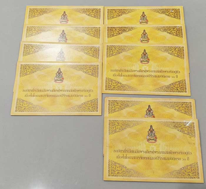เคาะเดียว..ธนบัตรหมุนเวียน แบบที่ 15 รุ่นที่ 2 ฉบับราคา 50 บาท.พิมพ์ด้วยกระดาษ 5 ฉบับ 5 ลายเซ็น สภาพไม่ได้ใช้ ไม่มีรอยพับ มีอมเหลือง 1 ฉบับ. ไม่มีรอยพับ |
