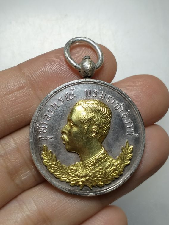 เหรียญรัชกาลที่ 5 หลังพระแม่ธรณีบีบมวยผม วัดเฉลิมพระเกียรติ เนื่องในงานกฐินพระราชทาน กปน.ปี๒๕๓๖ เนื้อเงิน |
