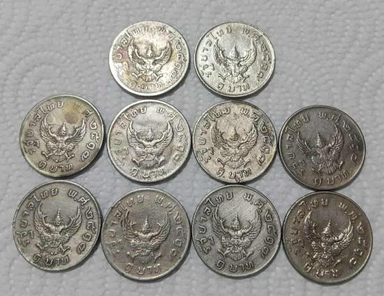 เคาะเดียว..เหรียญกษาปณ์หมุนเวียน รัชกาลที่ 9 ชนิดราคา 1 บาท.ปี 2517 หลังครุฑ จำนวน 10 เหรียญ สภาพใช้ ตามรูป |