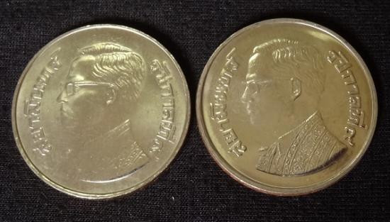 เหรียญ ในหลวงร.9 5 บาท ครุฑเฉียง ปี20 ,ปี 22 unc รวม2เหรียญ น้ำทองสวย วิ้งๆๆ |