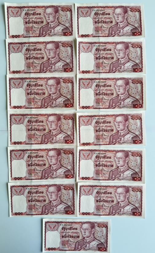 ธนบัตร 100 บาท รัชกาลที่ 9 แบบ 12 ช้างแดง เลข 6 หลัก จำนวน 13 ใบ เลขเรียง สวยใหม่กริ๊บ |