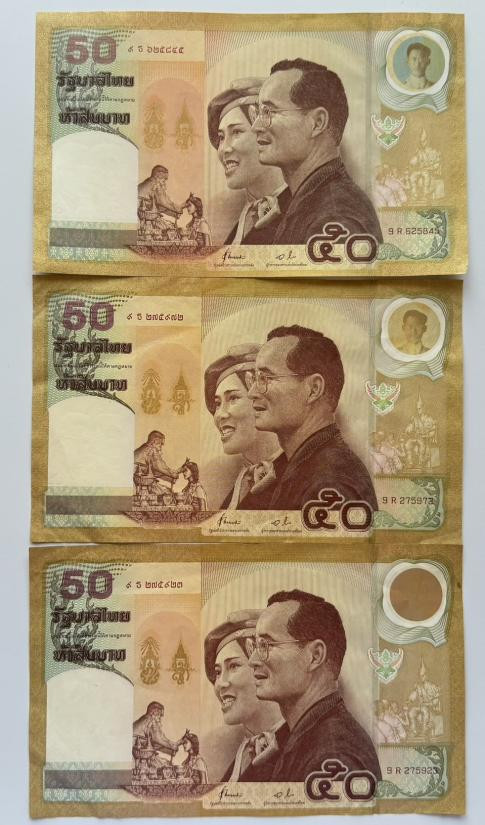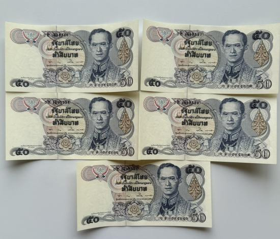 แบงค์ 50 บาท รัชกาล 9 ลายน้ำสมเด็จย่า 5 ใบ สวยเดิมๆๆ |
