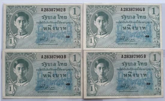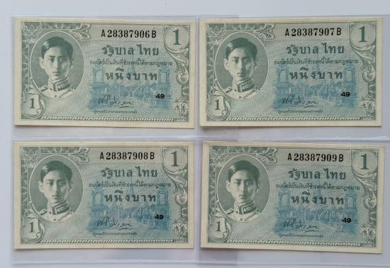 ธนบัตร 1 บาท รัชกาลที่ 8 พิมพ์อเมริกา จำนวน 4 ใบ สภาพสวยตามรูป |