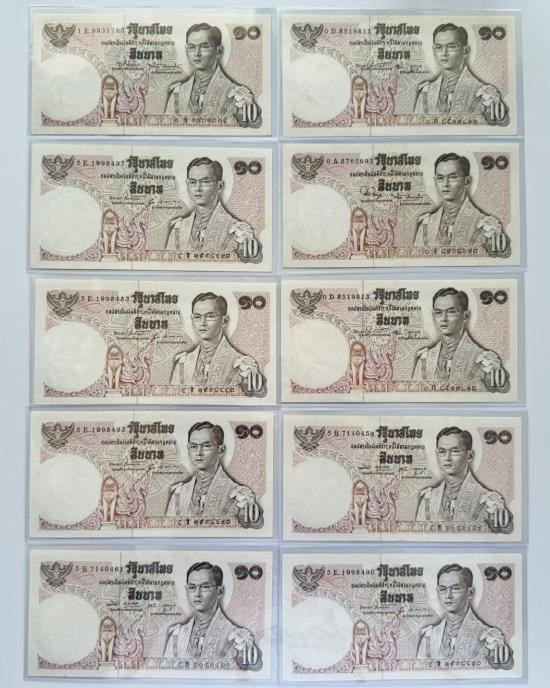 ธนบัตร 10 บาท รัชกาลที่ 9 แบบ 11 จำนวน 10 ใบ สภาพสวยตามรูป |