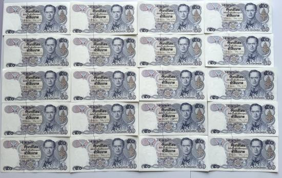 ธนบัตร 50 บาท รัชกาลที่ 9 แบบ 13 จำนวน 20 ใบ สภาพสวยตามรูป |