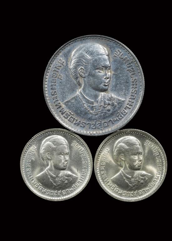 *เคาะเดียว ชุด3เหรียญ* เหรียญกษาปณ์ที่ระลึก พระราชพิธีสถาปนาพระราชอิสริยศักดิ์ สมเด็จพระเทพรัตนราชสุดาฯ ปี2520 ((( 150 บาท เนื้อเงิน 1 เหรียญ + 1 บาท เนื้อนิกเกิล 2 เหรียญ ))) ชุดกล่องไหมเดิม |