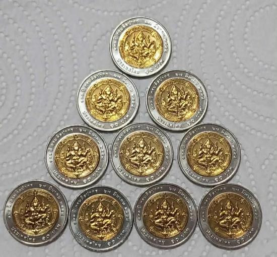 เหรียญที่ระลึก 10 บาท วาระ 100 ปีกรมศิลปากร ด้านหลังเป็นรูปพระพิฆเนศ เทพแห่งความสำเร็จ สภาพไม่ผ่านการใช้งาน UNC จำนวน 10 เหรียญ ครับ |