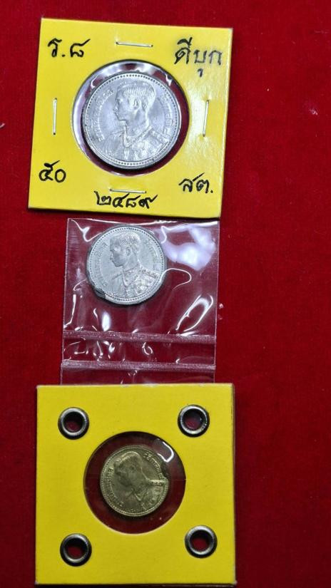 สภาพไม่ผ่านใช้สวยๆๆ เหรียญกษาปณ์ดีบุกในรัชกาลที่ 8 ซึ่งผลิตขึ้นในปี พ.ศ. 2489 10สตางค์+25สตางค์+50สตางค์ รวม3เหรียญ |
