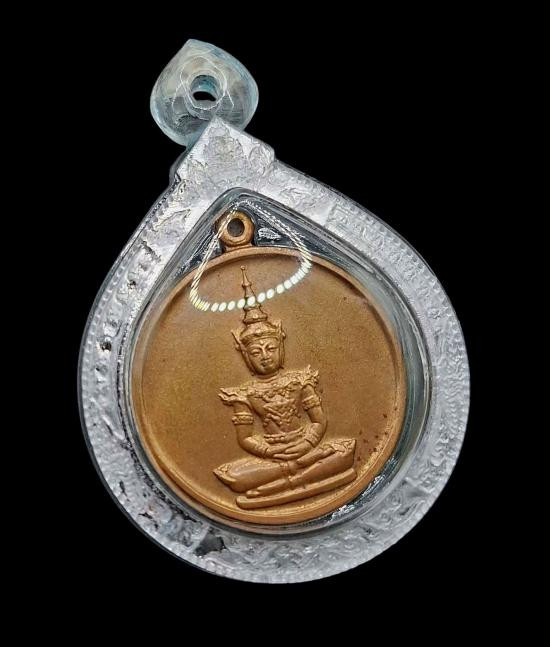 พระแก้วมรกตกรมสรรพสามิต เนื้อเงินสามกษัตริย์ เลี่ยมกรอบเงินผ่าหวาย |