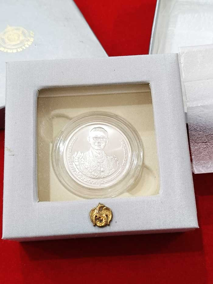 วัดใจ 100 เดียวแดง ++ เหรียญที่ระลึกพระราชพิธีถวายพระเพลิงพระบรมศพ ร.9 เนื้อเงิน พร้อมกล่อง |