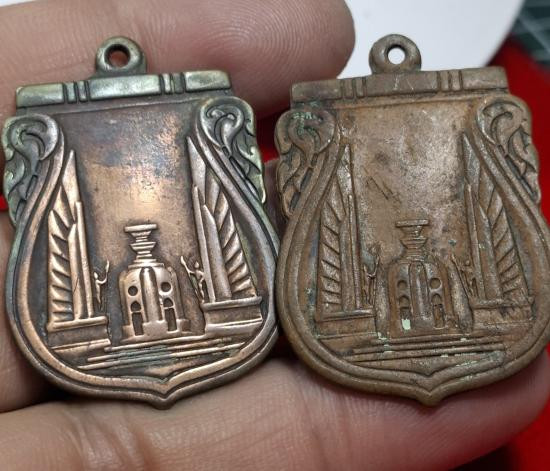 วัดใจ!!! รวม2 เหรียญ เหรียญสร้างชาติปลุกเสกที่วัดพระแก้วใน ปี2482 แล้วนำมาแจกในกงานฉลองอนุสาวรีย์ประชาธิปไตย ปี 2483 สมัยจอมพลแปลก พิบูลสงคราม เป็นนายก |
