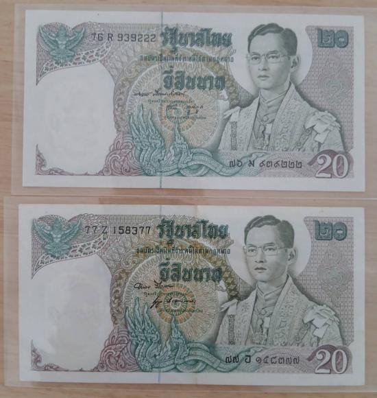 ธนบัตร 20 บาท หลังเรืออนันตนาคราช แบบ 11 จำนวน 2 ใบ สภาพสวย |