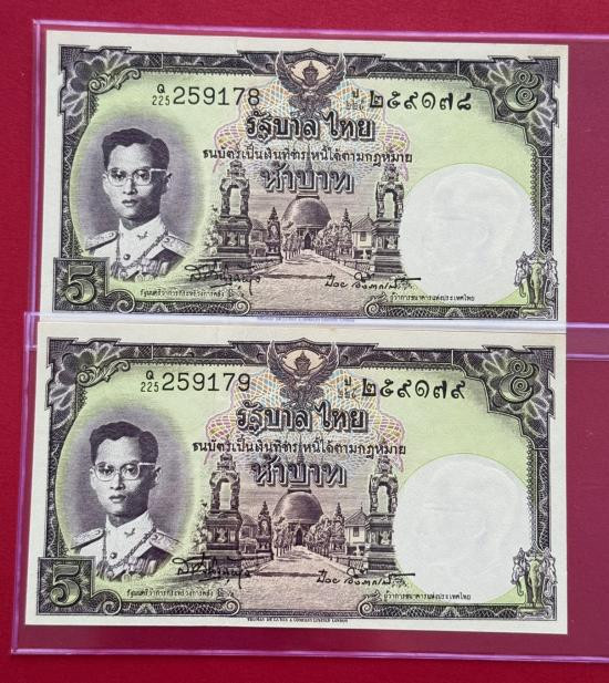 แบงค์ 5 บาท รัชกาลที่ 9 แบบที่9 พิมพ์โทมัส จำนวน 2 ใบ รูปสวย |