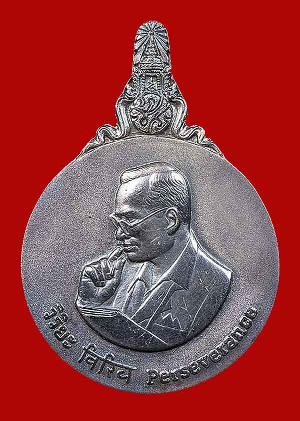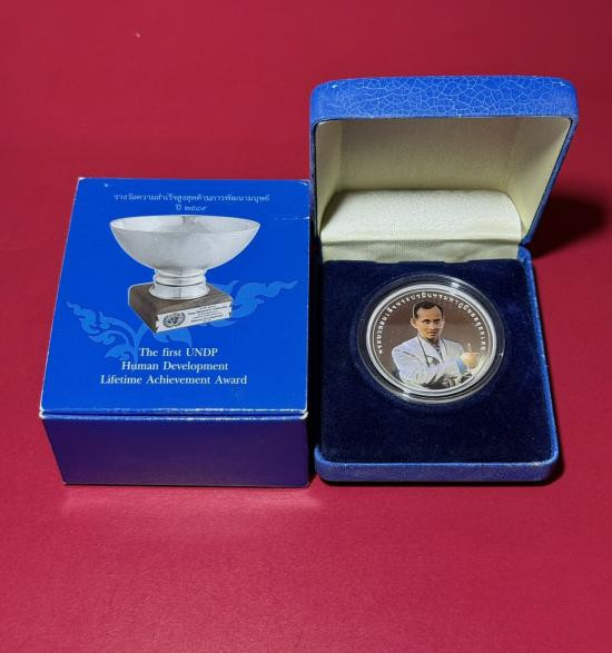 เหรียญพระมหาชนกเนื้อเงิน พิมพ์ใหญ่ พ่อหลวง ร.9 ทรงให้อาจารย์เฉลิมชัยออกแบบ เป็นเครื่องระลึกถึง "วิริยะธรรม" คือความเพียร พร้อมชุดหนังสือและกล่องใส่เหรียญครบชุด |