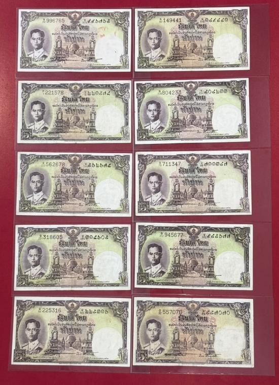 ธนบัตร รัชกาลที่ 9 แบบ 11 ชนิด 5 บาท หมวด S เลขเรียง จำนวน 5 ใบ สภาพสวยตามรูป |
