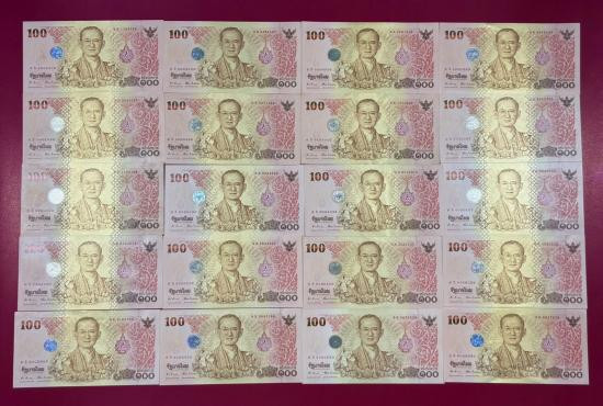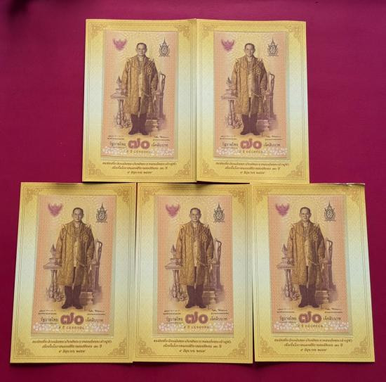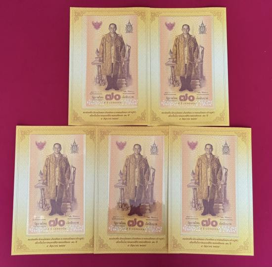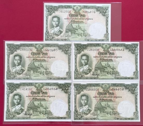 ธนบัตร 20 บาท รัชกาลที่ 9 แบบที่ 9 พิมพ์โทมัส จำนวน 5 ใบ สภาพสวยตามรูป |