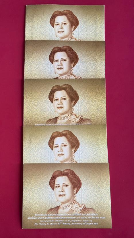 ธนบัตร 80 บาท ที่ระลึก 80 พรรษา พระราชินี จำนวน 5 ใบ สภาพสวยตามรูป |
