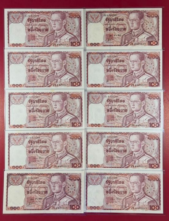 ธนบัตร 100 บาท ที่ระลึก 84 พรรษา รัชกาลที่ 9 + ปก จำนวน 10 ใบ สภาพตามรูป |