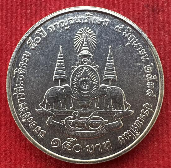 เหรียญกาญจนาภิเษกในหลวง ร. 9 ปี 2539 เนื้อเงิน ราคาหน้าเหรียญ 150 บาท |