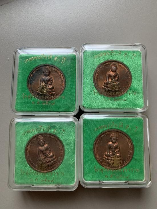 วัดใจ40 เหรียญพระกริ่ง วัดสุทัศน์ฯ หลังตราครองราชย์ 50 ปี พ.ศ.2539 เนื้อทองแดง  ตอกโค๊ต กล่องเดิม รวม4กล่อง |