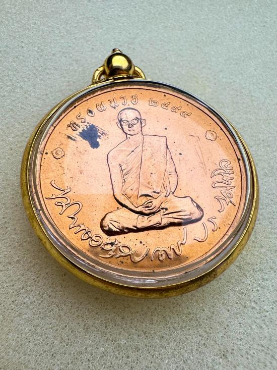 เหรียญในหลวงทรงผนวช เนื้อทองแดง ที่ระลึกบูรณะพระเจดีย์ วัดบวรนิเวศ ปี 2550 เลี่ยมผ่าหวายชุบทองพร้อมห้อยสวยๆ |