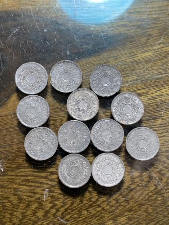 **ทีเดียว 12 เหรียญ **เหรียญดีบุก ราคา 1 สตางค์ ตราลายกระหนก พ.ศ. 2485 รัชกาลที่8 |