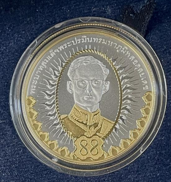 วัดใจ เคาะเดียวแดง เหรียญแพรแถบ ในหลวง ร.9 พระชนมายุ 7 รอบ เนื้อเงิน ปี 2554 |
